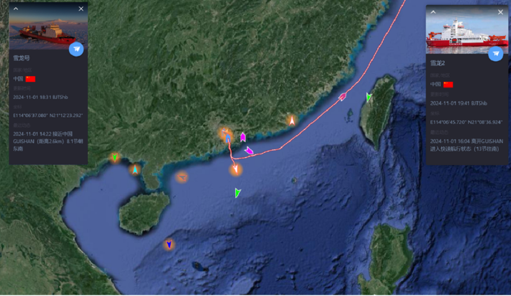 1.11月1日,“雪龙 ”号与“雪龙2”号离开位于珠江出海口的南沙国际邮轮母港,启程奔赴南极,开展中国第41次南极考察。